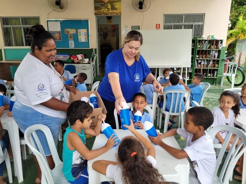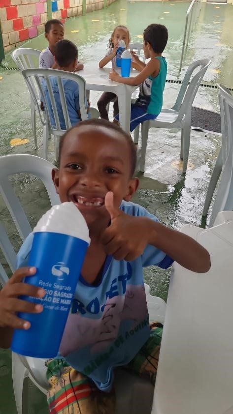 Foi uma bela surpresa! Todos ficaram super felizes com o gesto de carinho. O brinde será muito útil na vida dos contemplados, que poderão utilizá-los para tomar seus líquidos preferidos e, o mais importante, a água. Após a entrega, todos agradeceram o presente e abriram os sorrisos para as fotos.