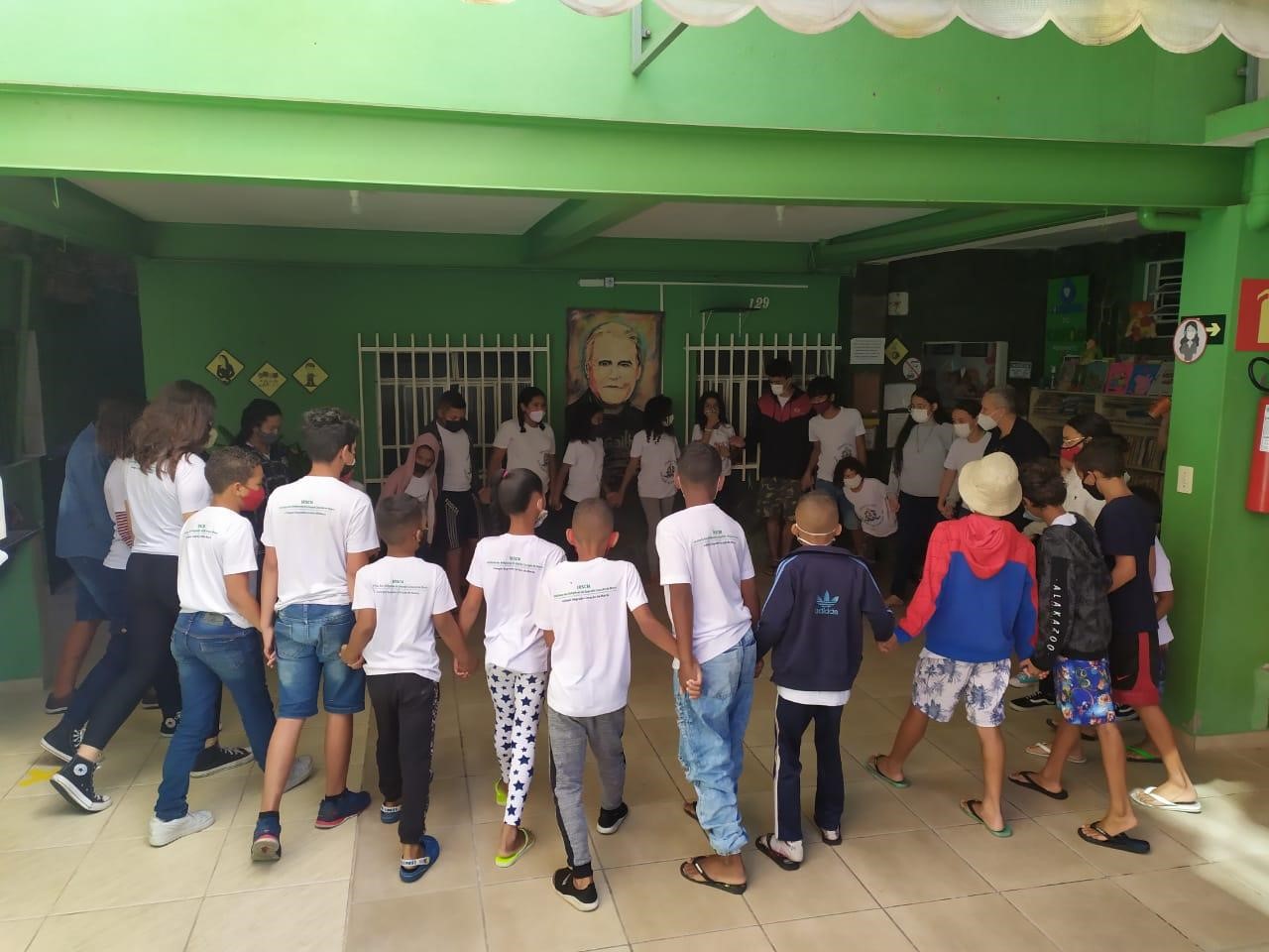 As crianças e os adolescentes foram recebidos com uma linda contação de história, do livro “Flávia e o Bolo de Chocolate”, de Míriam Leitão. Em seguida foram realizadas algumas ações: exibição do Filme Kiriku e a feiticeira; oficina de desenho livre, com objetivo de desenvolver uma ideia para o grafite do Projeto Negritude e Resistência, a ser realizado no território. E para abrilhantar ainda mais o dia, foi realizada a culminância do Projeto Brincar na Diversidade com exposição e oportunidade para brincar com jogos de outros países do continente Africano e Asiático, todos os exemplares confeccionados na Unidade. O café da manhã e o lanche da tarde “… hummm que delícia!” fazendo alusão ao livro, foi servido um delicioso cupcake de chocolate.