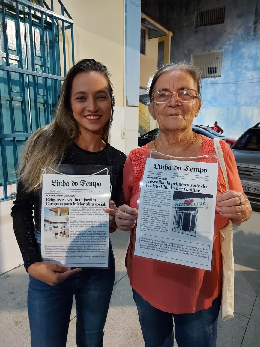Neste dia foi exposta também uma linha do tempo, preparada com carinho pelos grupos, em que foram apresentados, em forma de notícias, alguns marcos históricos que ajudam a contar a história desta instituição que, há quase três décadas, atua na defesa da vida dos mais vulneráveis e que faz parte da história de Jardim Carapina.