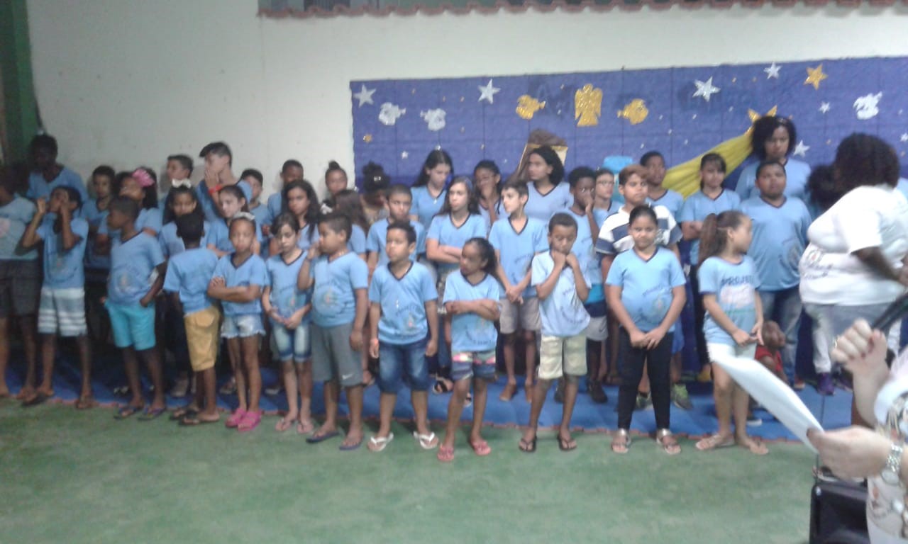 O momento foi encerrado com as crianças e os adolescentes cantando a música “Um mundo bem Melhor”.