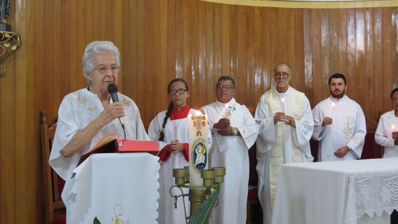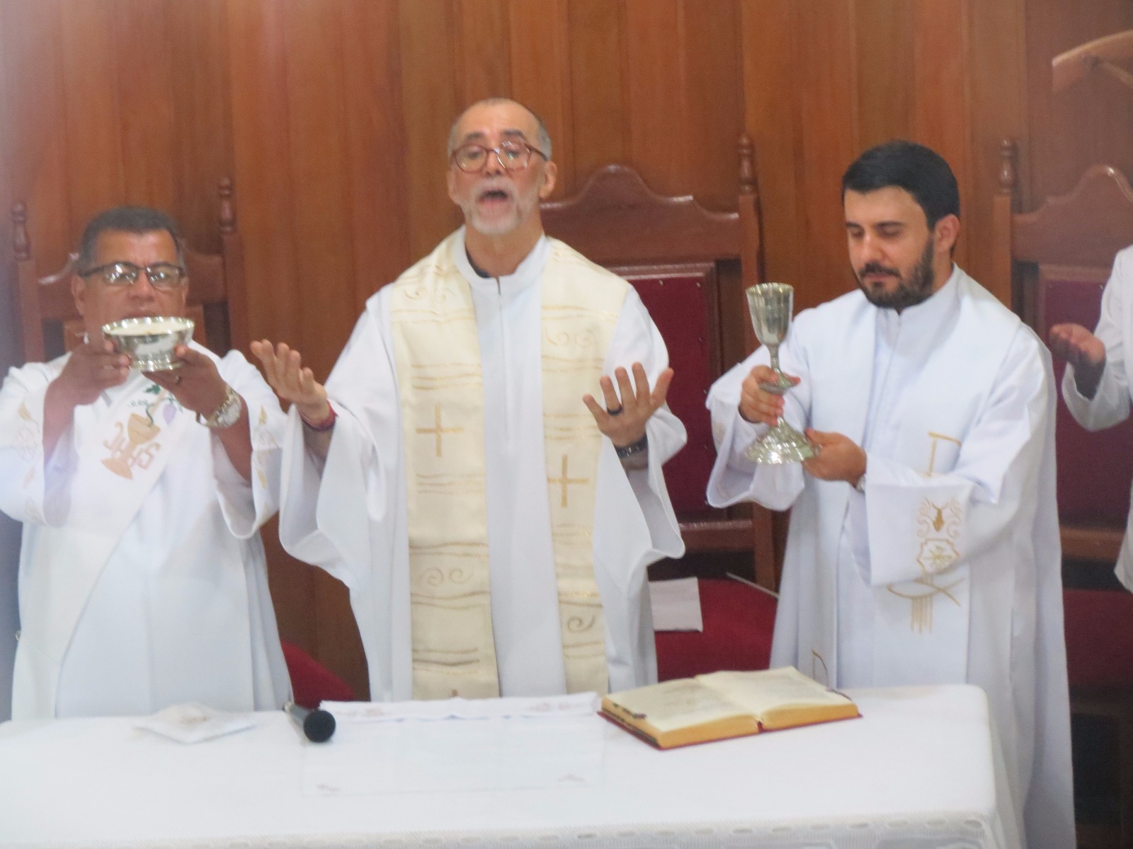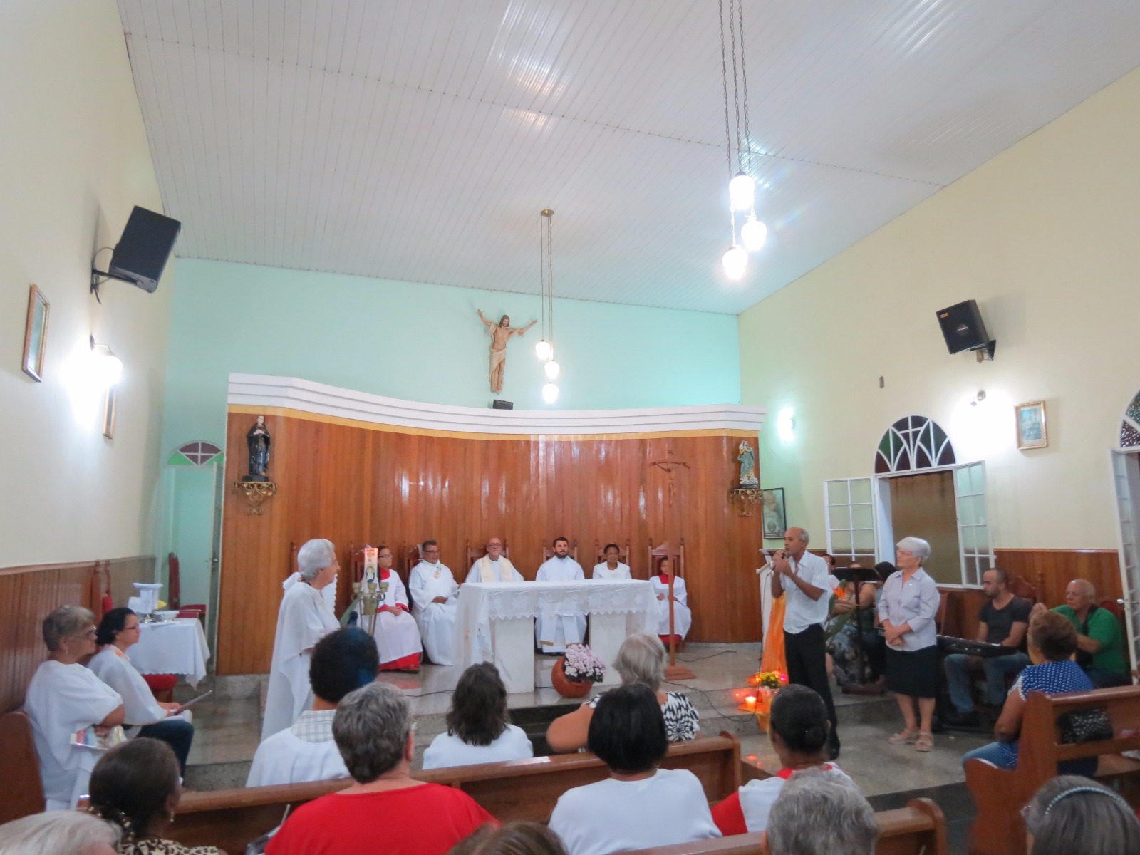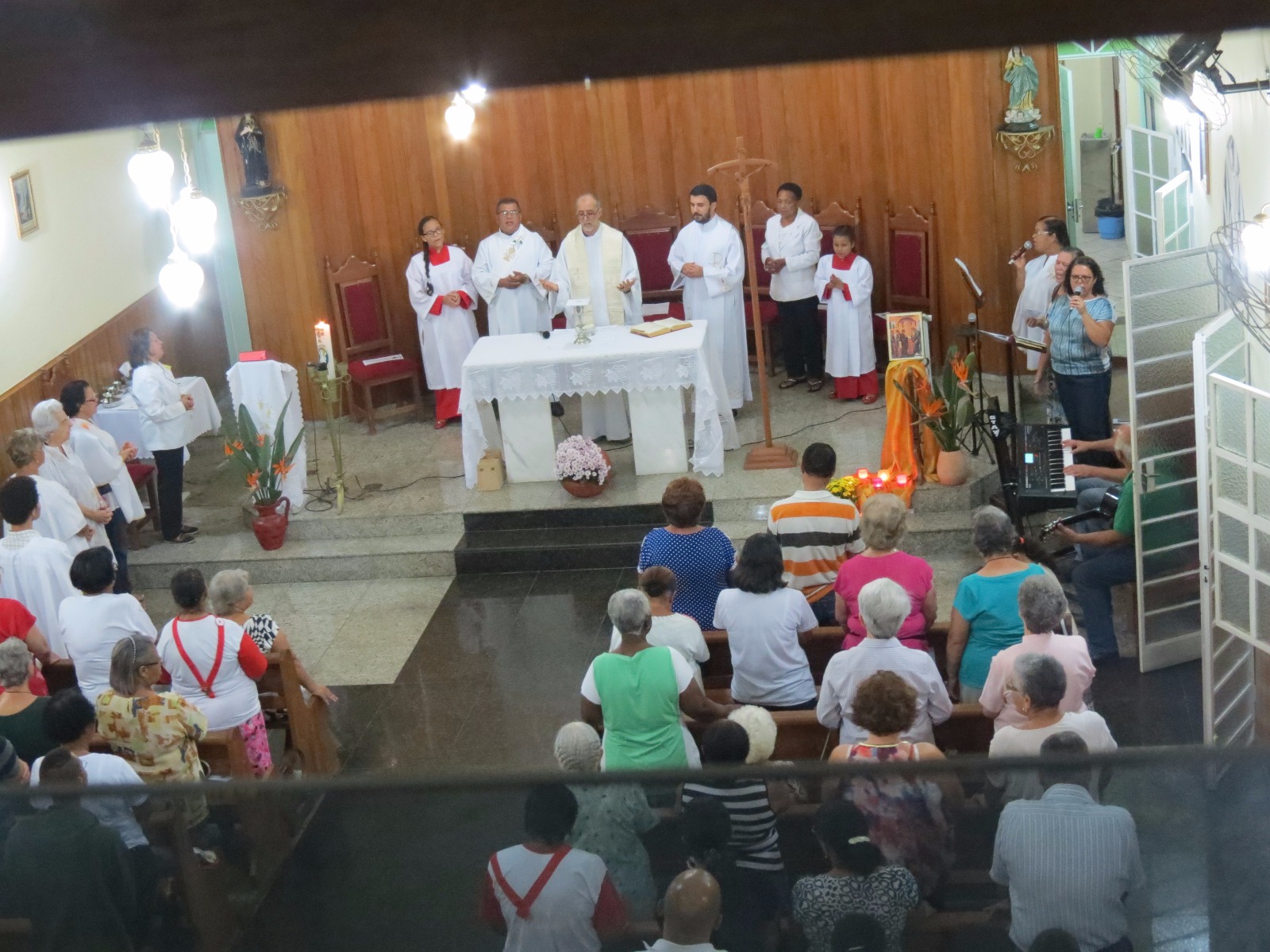 A celebração foi presidida pelo Pe. Mirim, Pe. Bruno e o Diácono Waldimiro. A celebração foi bem participativa, permitindo a participação espontânea das pessoas. “Construímos” juntos este momento celebrativo.
