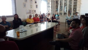 O encontro – preparado por Waldemar Bettio e Rita de Cássia Alves, ambos membros da Comissão de Organização e Colaboradores da SCCE – aconteceu no dia 17 de agosto e teve como convidados, para comporem a mesa redonda, Ir. Terezinha Cecchin, rscm e Sérgio Miranda Antônio, Colaborador na SCCE. A proposta foi apresentar um panorama das diversas formas de se servir a Deus, por meio da experiência de vida dos dois convidados.