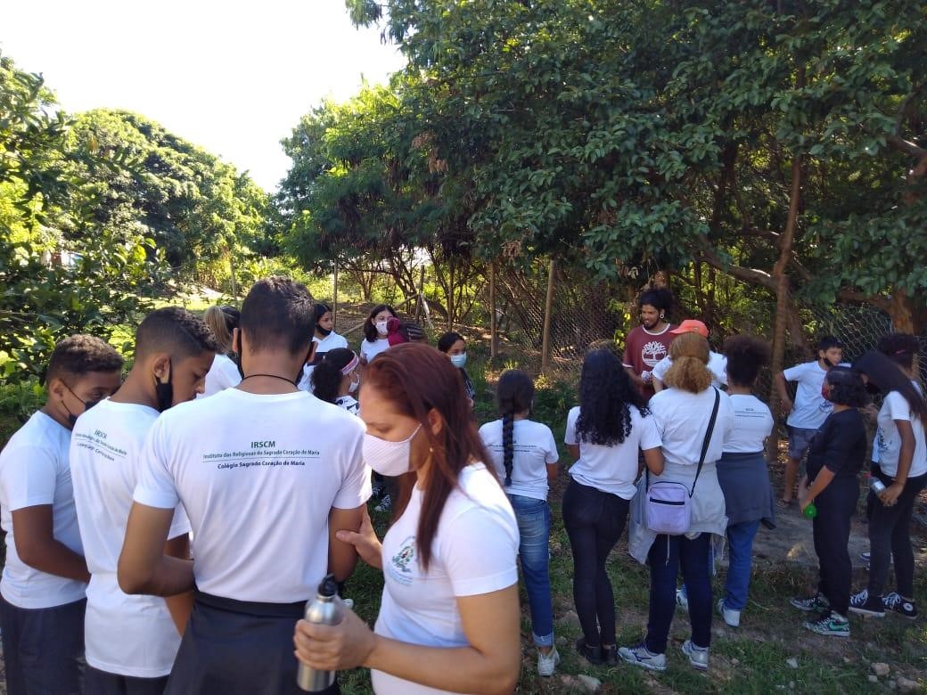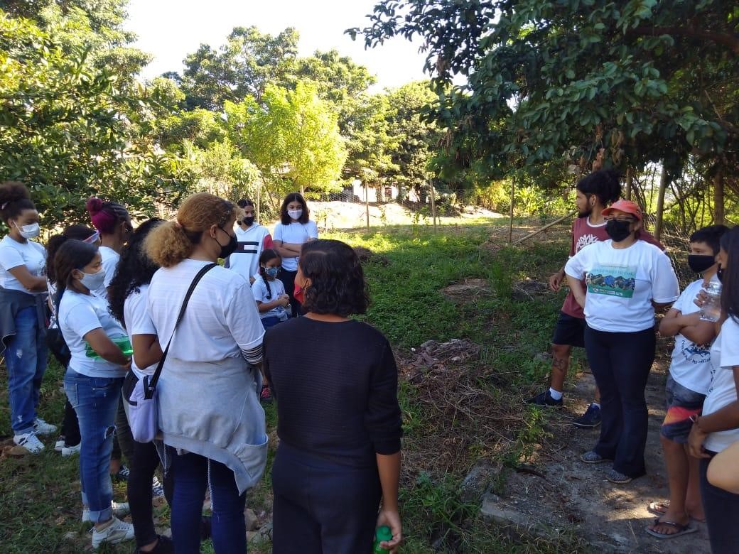 A visita foi um espaço para esclarecer os objetivos da horta e sensibilizar as crianças e adolescentes sobre a necessidade de termos um espaço para produção comunitária de alimentos orgânicos, de geração de renda e partilha entre os cuidadores.