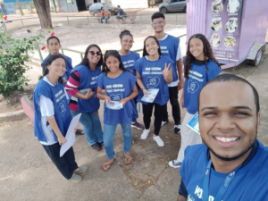 Para enriquecer a ação, todos tiveram a oportunidade de conhecer o trabalho desenvolvido pelo Instituto Proeco – Projeto Expresso Centro-Oeste – por meio de sua presidente, Márcia Ramos, e vice-presidente, Tainá Ramos. As representantes tiveram um momento de bate-papo com todos os presentes sobre temas sociais importantes para discussão e reflexão, questões que geram desigualdades, como: violência de gênero e preconceito racial.