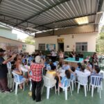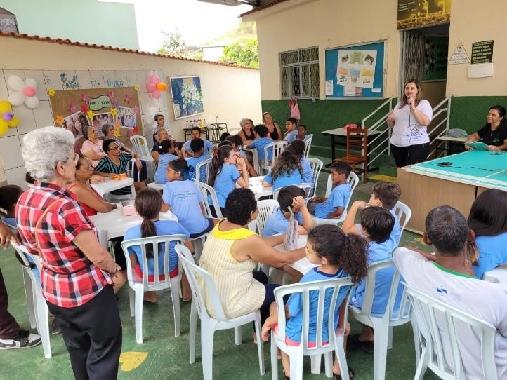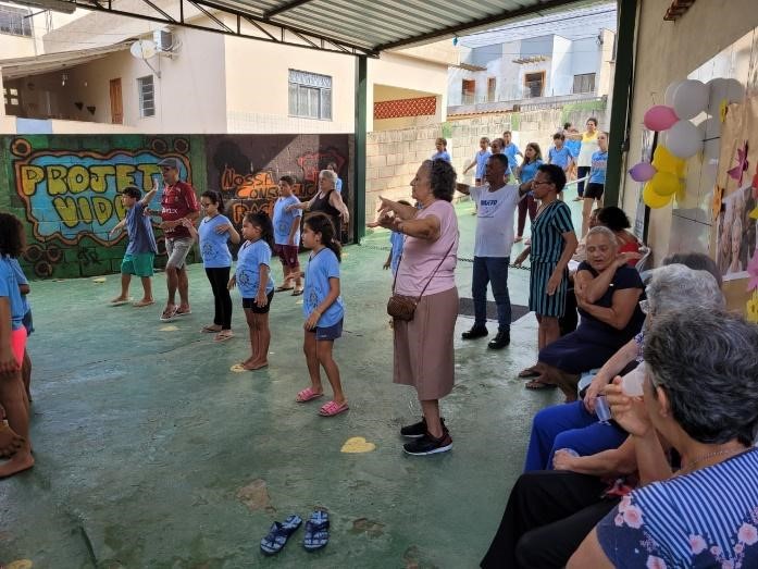Pessoas idosas pertencente às famílias das crianças e dos adolescentes atendidas pela unidade, foram convidadas para participarem de dois momentos, sendo um no turno da manhã: aferição da pressão arterial, índice glicêmico, orientação com entrega de panfleto sobre a campanha Outubro Rosa (prevenção ao câncer de mama), bate papo com os(as) convidados(as) no momento da “sala de espera” pelo atendimento de saúde e atividade de alongamento coletivo; no turno da tarde, foi realizado um divertido jogo do bingo com premiação de brindes e na sequência uma oficina de dança, super animada, entre idosos, crianças e adolescentes conduzida pelo oficineiro João Paulo Bebiano.