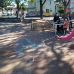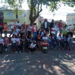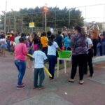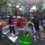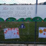 Para favorecer a participação das crianças e dos adolescentes do período da manhã e para mobilizar a comunidade à participação e adesão no período da tarde, a Unidade desenvolveu a mesma proposta na praça, além de afixar cartazes nos postes.