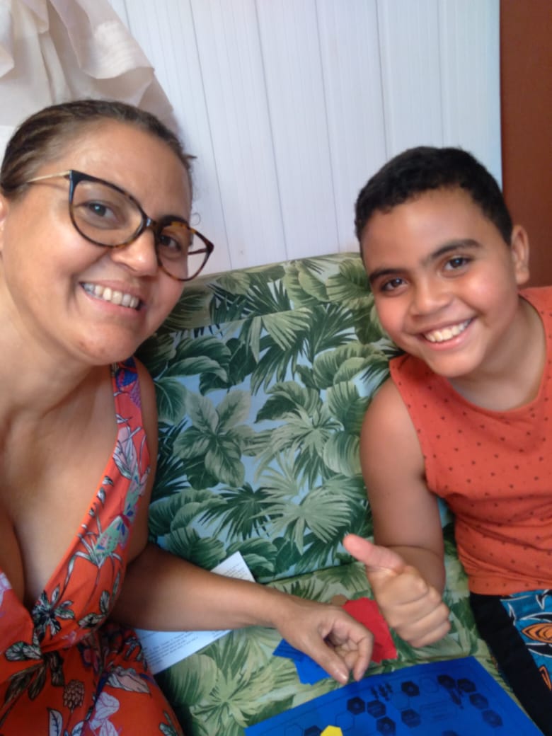 Visando proporcionar a interação em família, a Unidade entregou aos(às) beneficiados(as) uma peça artesanal (ímã de geladeira) com frases reflexivas sobre o significado da família, um jogo de xadrez de tabuleiro denominado “Gato e Rato” e um jogo chamado de “Jogo da Família”. Esse último, foi enviado pelo Projeto Vida Padre Gailhac de Belo Horizonte, numa demonstração ímpar de generosidade. Junto a isso, durante o mês, foram realizadas dinâmicas nos encontros virtuais – espaços esses que foram fundamentais para despertar sentimentos e reflexões para cada um(a) sobre a importância da família.