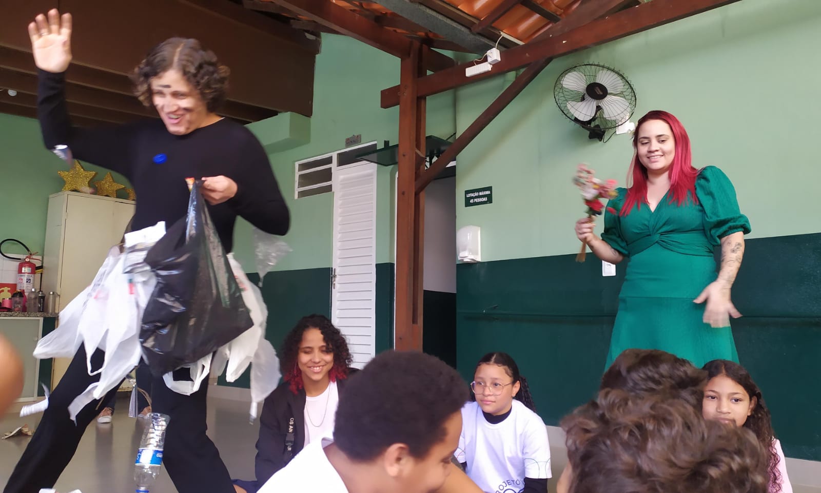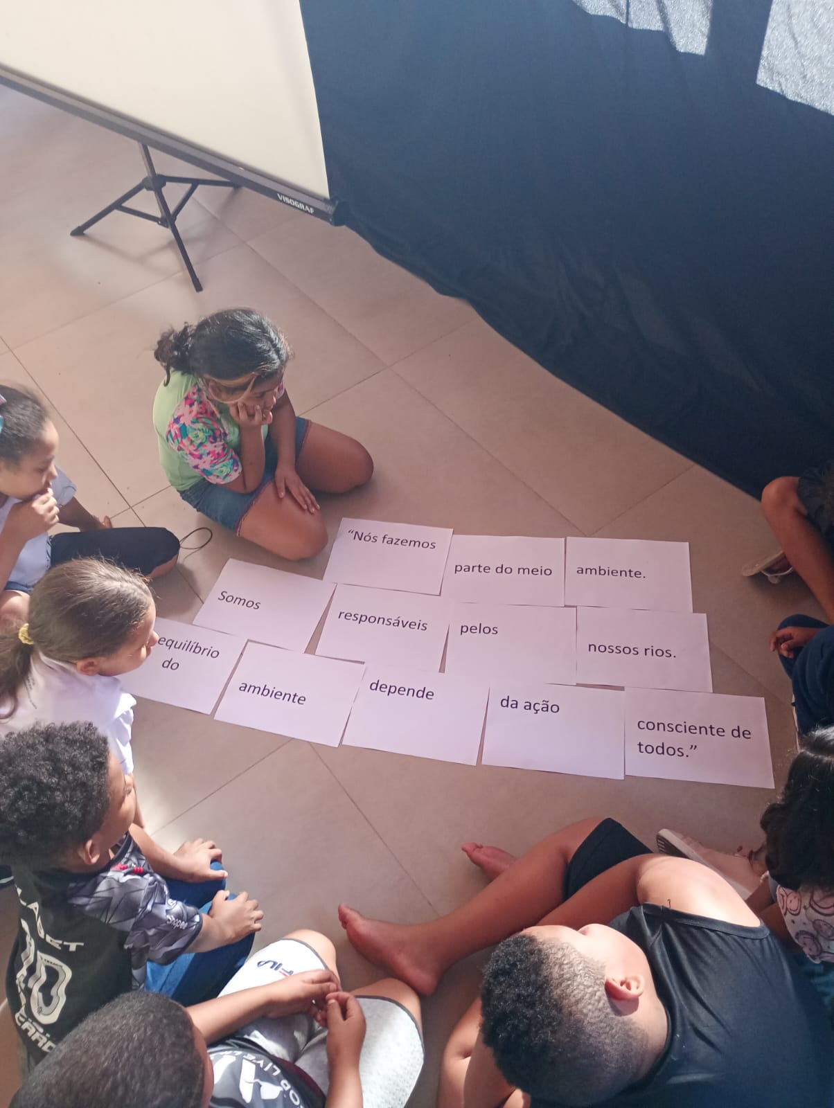 Para fechar com chave de ouro, tivemos um Quiz interativo, com as crianças e adolescentes divididos em duas equipes. As perguntas abordaram temas ambientais e a COP 30, grande conferência sobre o clima prevista para acontecer no Brasil neste ano.