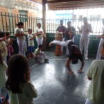 Assim como previsto no planejamento da Oficina de Capoeira, aconteceu neste mês de setembro a roda avaliativa, que consistiu em um “pré-batizado”. As crianças e adolescentes vêm se preparando através de atividades relacionadas à história da capoeira e a treinos de esquivas e golpes.  Neste dia estiveram presentes alguns instrutores e professores do grupo Malícia Brasil*, Mestre Chicoreba coordenador e mentor do grupo. As crianças e adolescentes foram avaliados através do jogo com os instrutores, professores e o mestre e no jogo livre as crianças e adolescentes jogaram entre si. A pontuação adquirida neste processo será complementada com as demais pontuações de duas atividades realizadas anteriormente. Este processo vem subsidiando as crianças e adolescentes para compreenderem  que a capoeira é mais do que uma a luta, é um bem cultural que precisa ser bem conhecido e preservado.