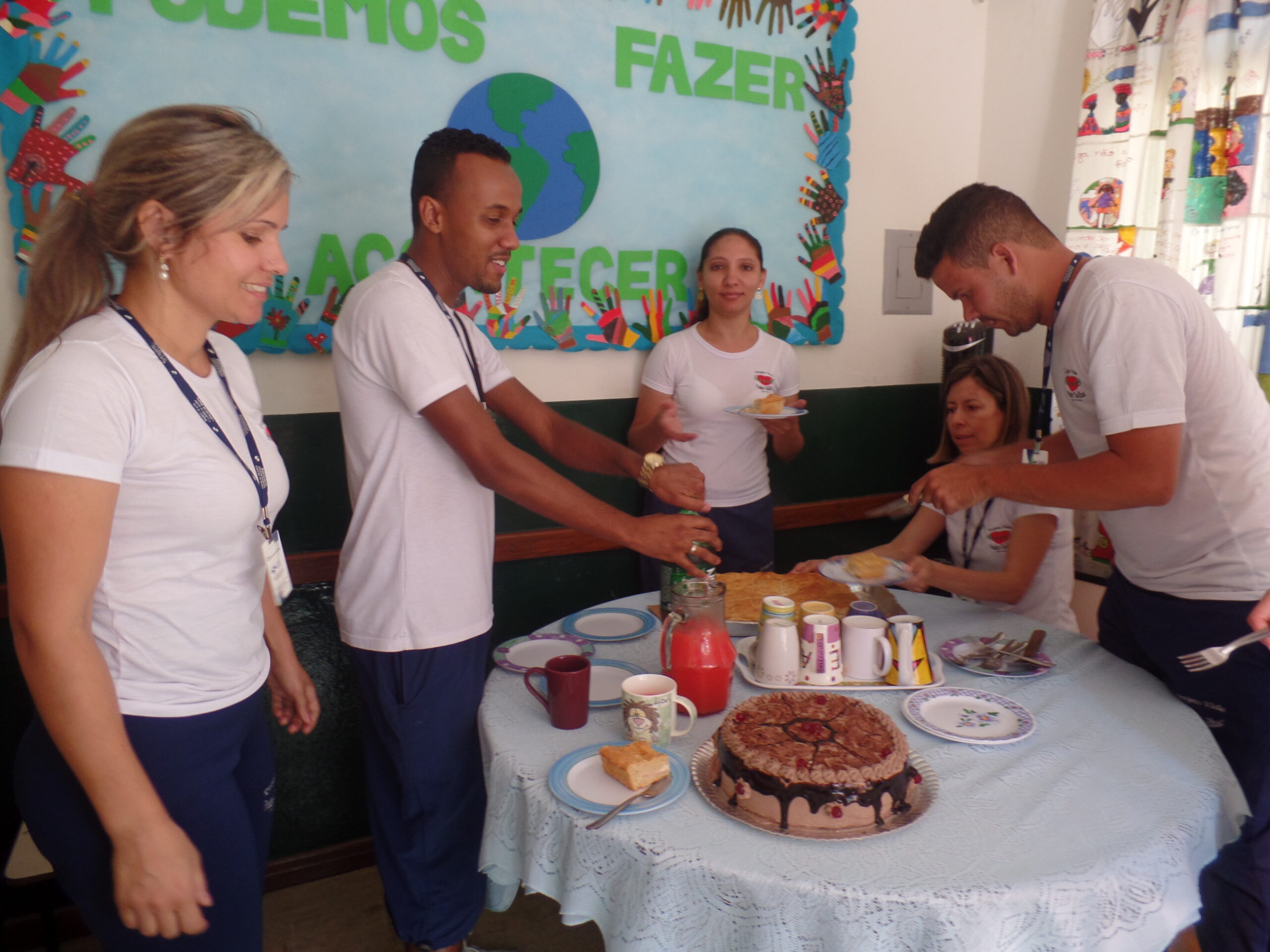 A cada final de mês celebramos o aniversário dos colaboradores e neste mês de setembro celebramos o aniversário de Solange Teixeira, educadora das Oficinas de Laboratório de Aprendizagem e Brinquedoteca. A equipe se reuniu com a educadora, cantamos parabéns e partilhamos uma deliciosa torta e um bolo.