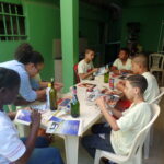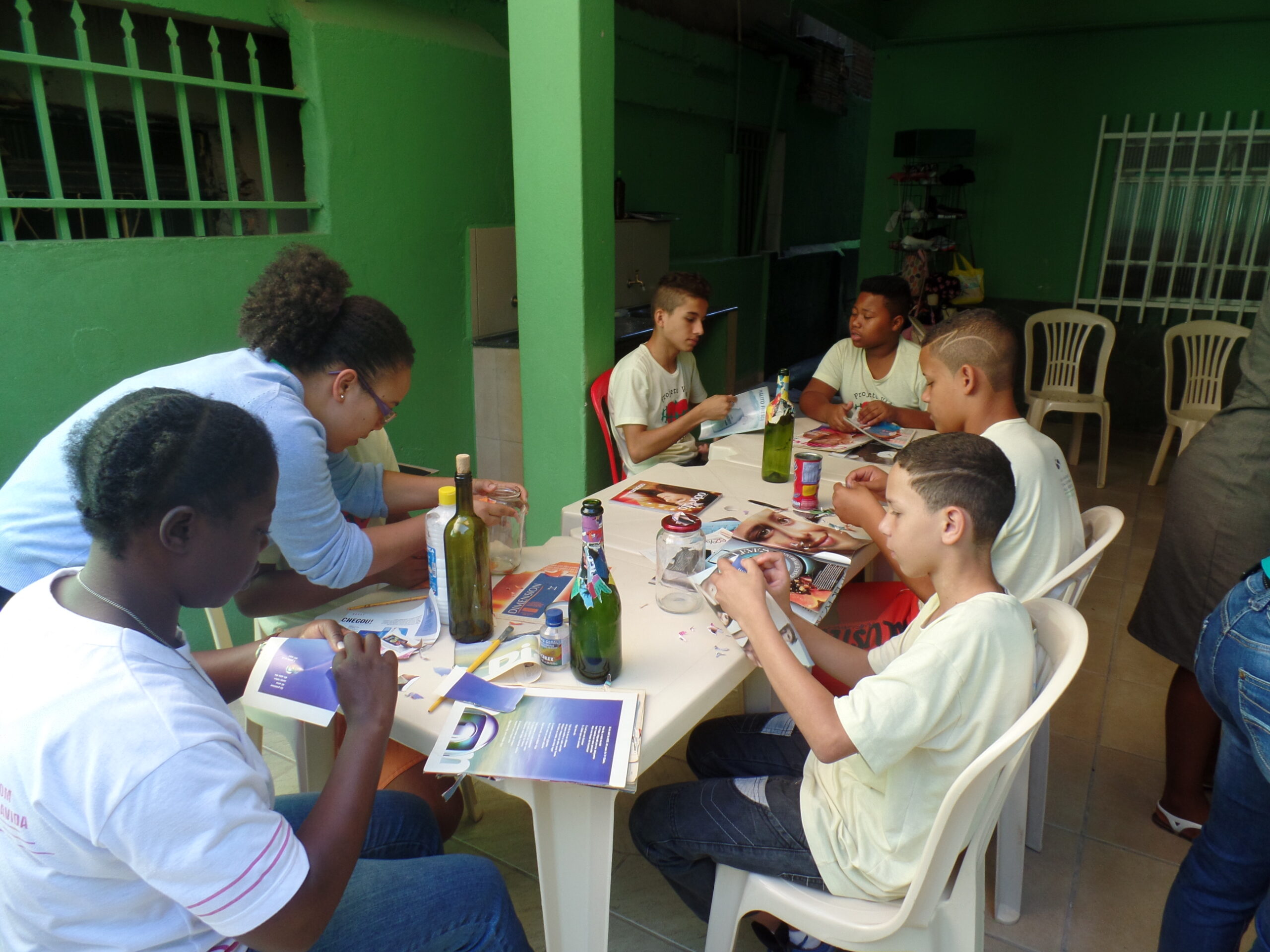 Resumo da atividade: No dia 15 de abril as noviças Aélita Otavia, Celine Bitega, Luiza Bernardo, Mary Lungu, Precious Pyela, e as Irmãs Fernanda Marques, Delva Piedade e Cecilia de Souza vieram ao Projeto para conviver um dia com as crianças e adolescentes. As irmãs e noviças mobilizaram duas oficinas com as crianças e adolescentes: uma oficina de decoração em garrafas e uma outra de cabelo afro. As propostas foram bem acolhidas pelas crianças e adolescentes e as meninas foram embora com os cabelos transados. Irmãs e noviças aproveitaram para ensinar e aprender algumas músicas para interação e participar da celebração dos Sim’s.