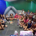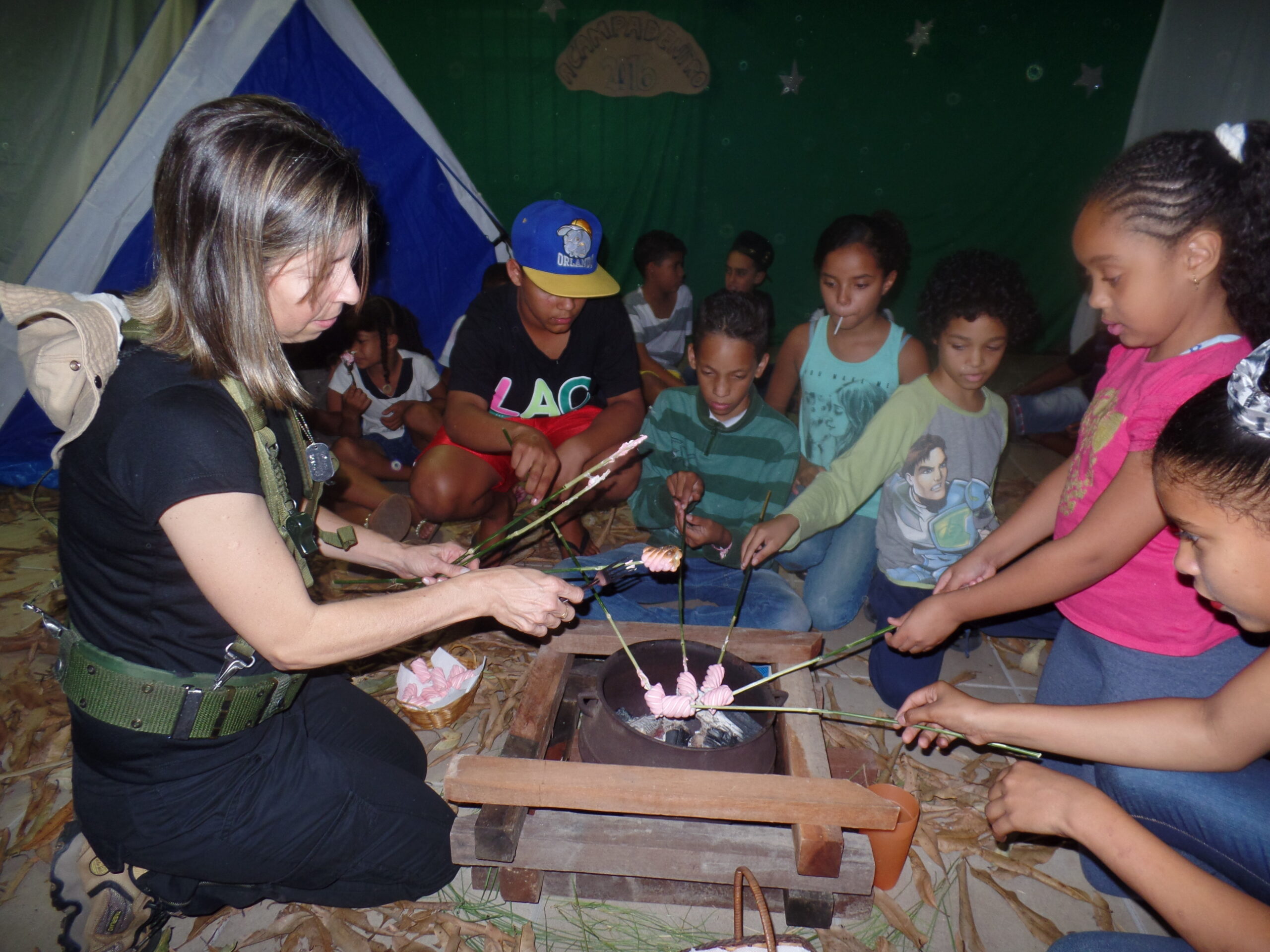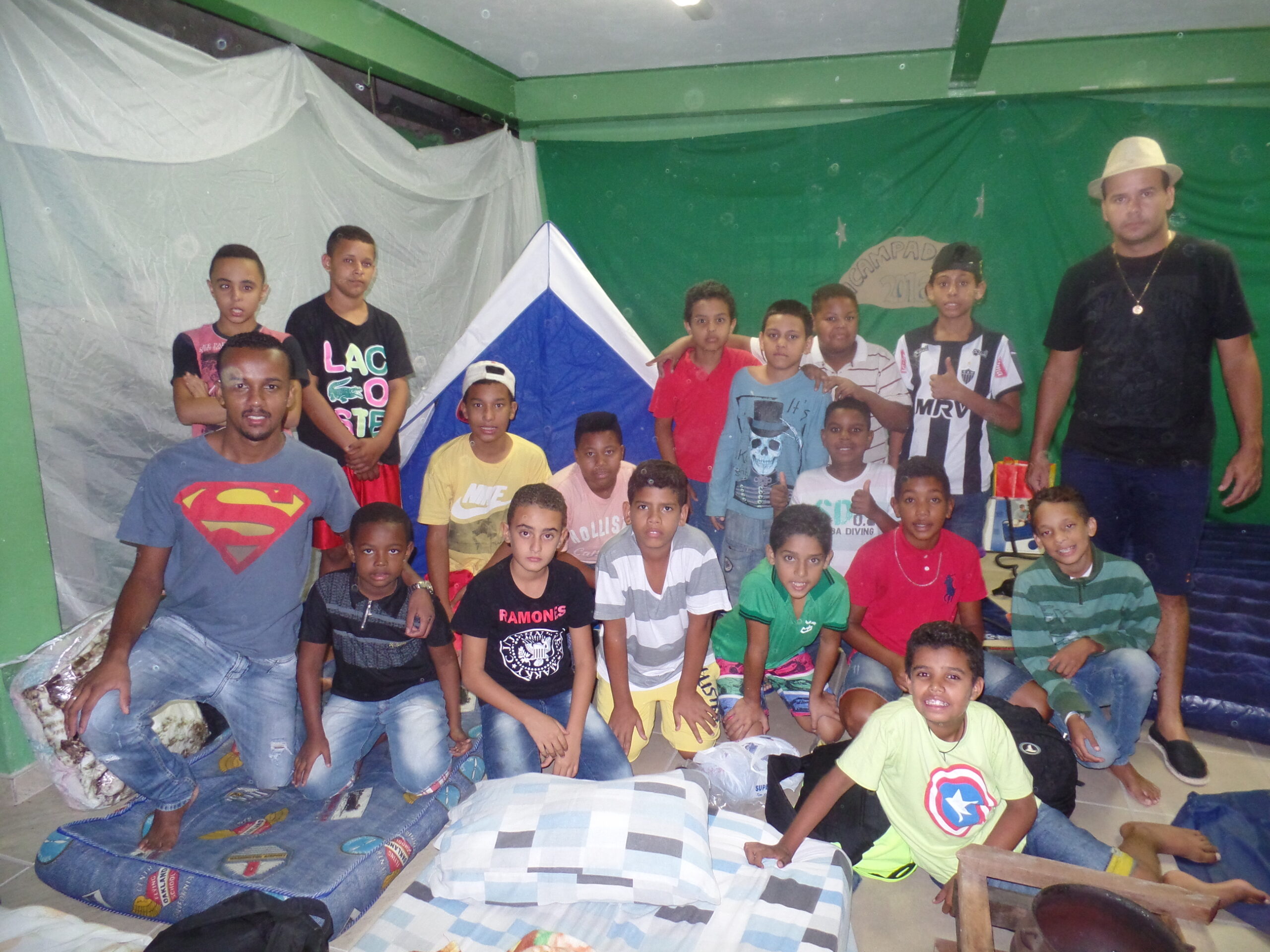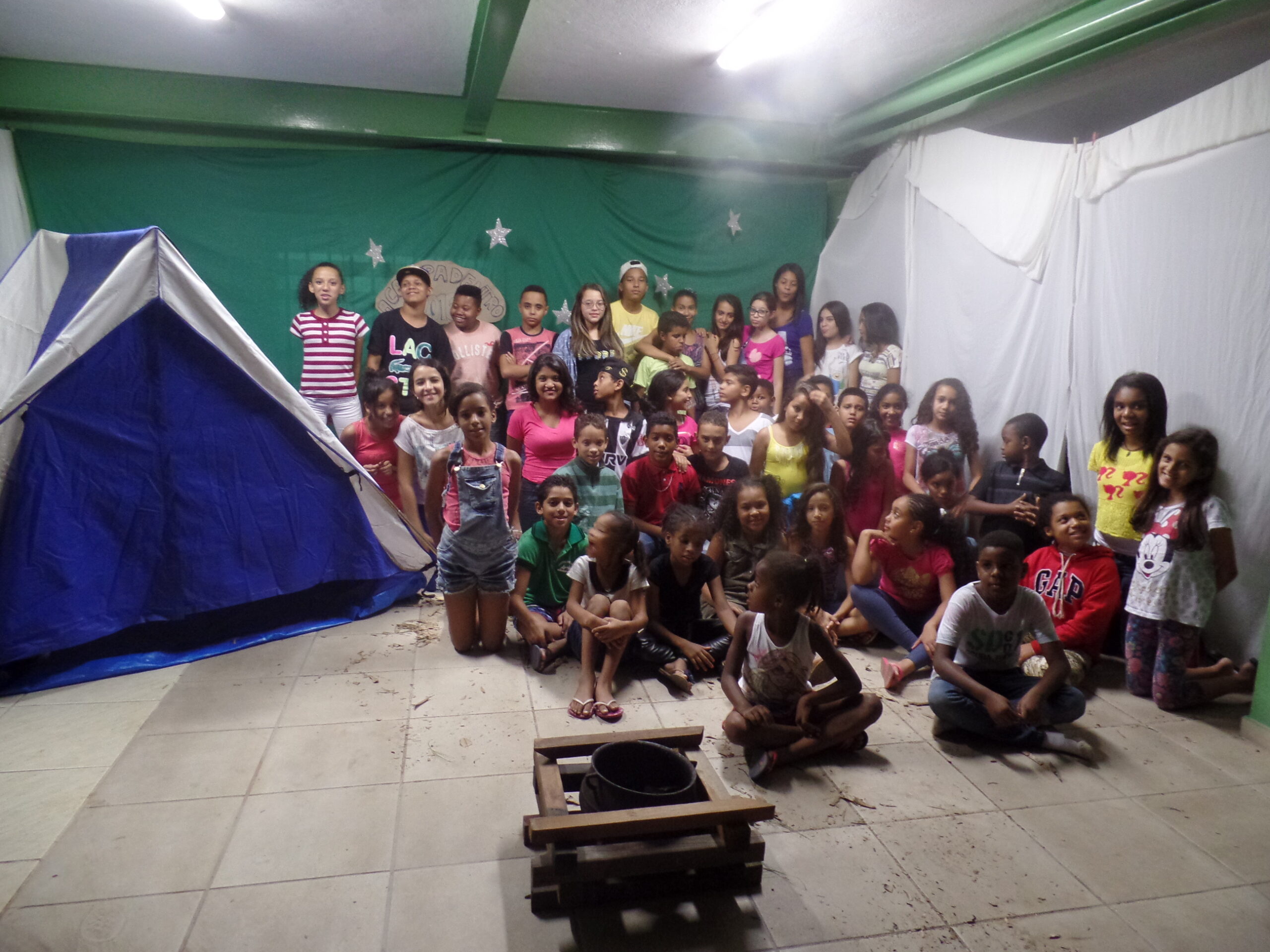 Resumo da atividade: Para celebrar o aproveitamento das crianças e adolescentes no ano de 2015, foi preparado no dia 20 de abril o primeiro ACAMPADENTRO. O evento contou com a presença de 51 participantes entre crianças e adolescentes, que atingiram uma média acima de 80% de aproveitamento no ano de 2015. Foram preparadas atividades típicas como: contação de história, piadas, desfile de pijamas e piquenique, e não podia faltar marshimelo assado, milho cozido e cachorro quente. Todos vieram em clima de acampamento trouxeram colchão e tudo mais.