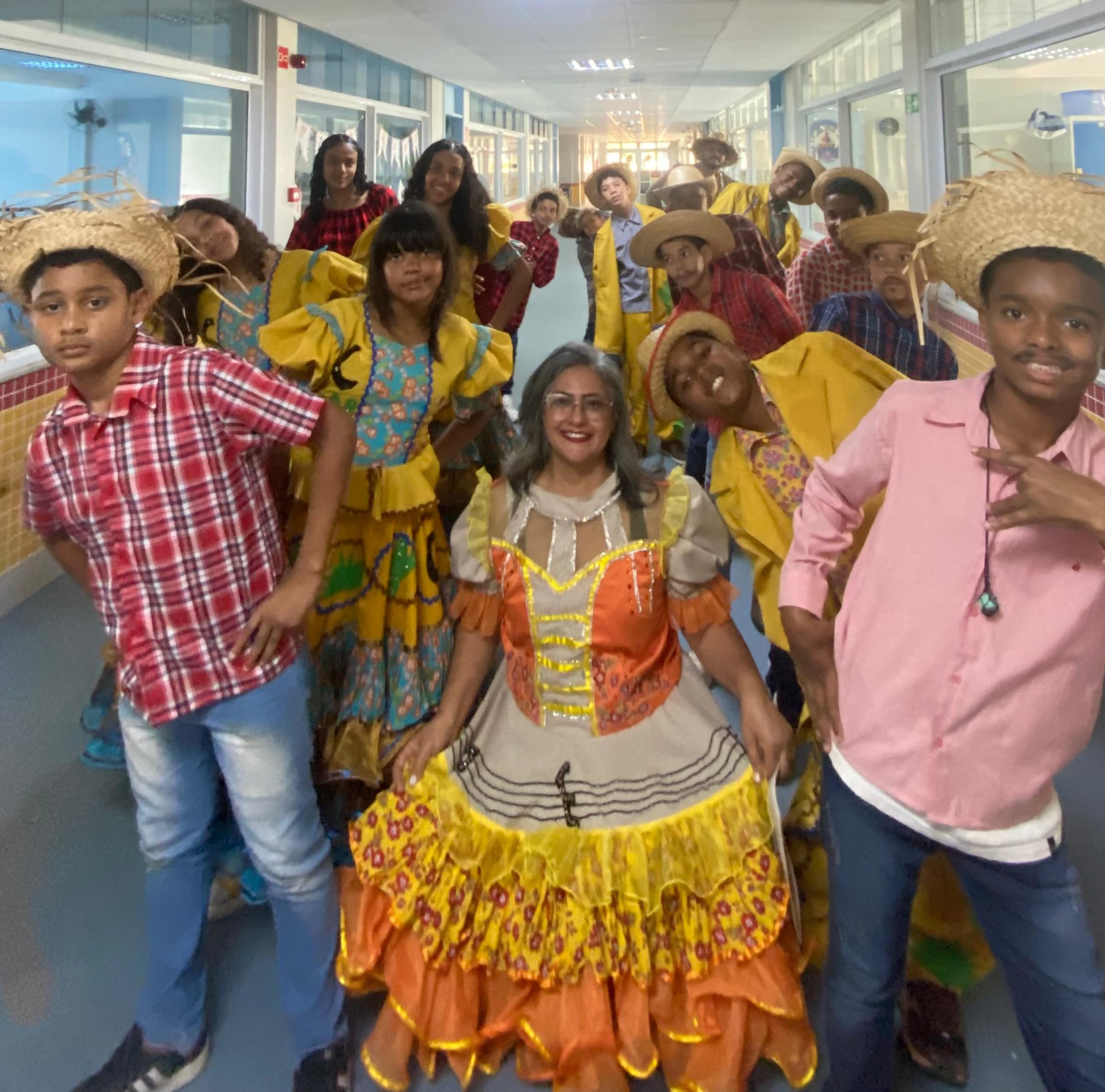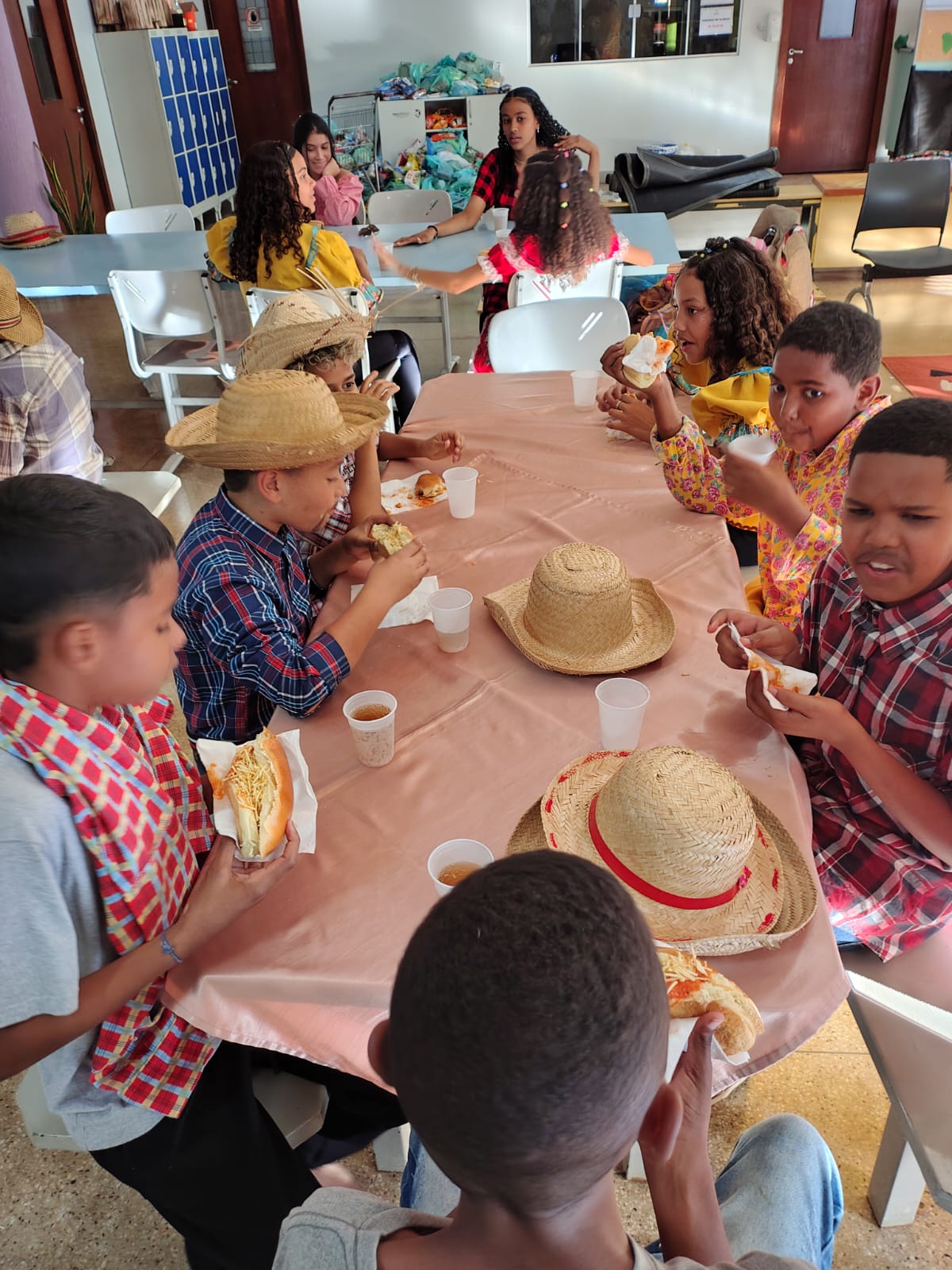 Levamos uma apresentação pra lá de especial, com o tema “O Céu do Sertão é Seu”, inspirado na obra da autora Ninfa Parreira, da Editora Paulus Social. Nossa equipe e os beneficiados entraram no clima, vestiram-se a rigor e encantaram com as danças Luar do Sertão e São João do Sertão.