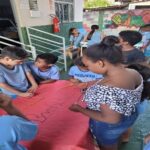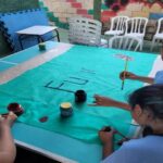 A proposta é termos atividades de gincana! Foram criados com as crianças e os adolescentes os combinados, para que haja uma boa e respeitosa competição. Realizou-se a divisão das equipes e confecção das bandeiras.