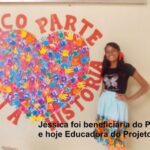Ao celebrarmos os nove anos de existência, ficamos muito felizes, pois uma das nossas Educadoras que iniciou o trabalho esse ano foi beneficiária do Projeto e partilhou com as crianças o quanto o Projeto colaborou na sua formação.