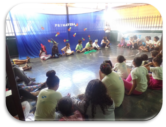 Durante os meses de agosto e setembro, na oficina de Artes Cênicas, com a educadora Amanda, foi trabalhado com as crianças da turma Fraternidade o tema primavera. O tema foi abordado por meio de rodas de conversas, visualização de imagem e escuta de músicas. Entre elas a música “A Linda Rosa Juvenil” , que é um clássico nas cantigas de roda. Durante esses meses, as crianças também ensaiaram a coreografia dessa cantiga.
