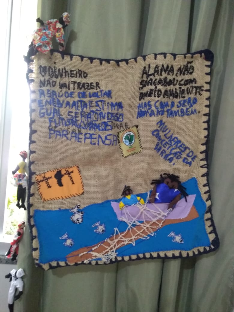 Assim passamos o dia, contando, desvelando as dores do nosso Rio Doce que sofreu, sofre e sofrerá, fazendo muitos famintos e doentes. Relatos e dramas são desvelados e, bordando, damos lugar à ênfase de contar, de denunciar essa tragédia e de quem está a serviço do lucro.