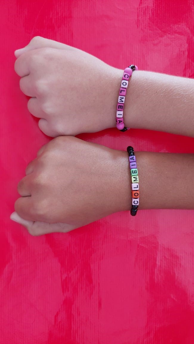 Os momentos de brincadeiras promovidos foram fotografados e serviram de inspiração para que as crianças e adolescentes, através do desenho e da pintura, se retratassem em grupo. Após o trabalho com o desenho e a pintura, cada criança pode construir uma pulseira com o nome do seu grupo, simbolizando o seu compromisso no convívio com os colegas.