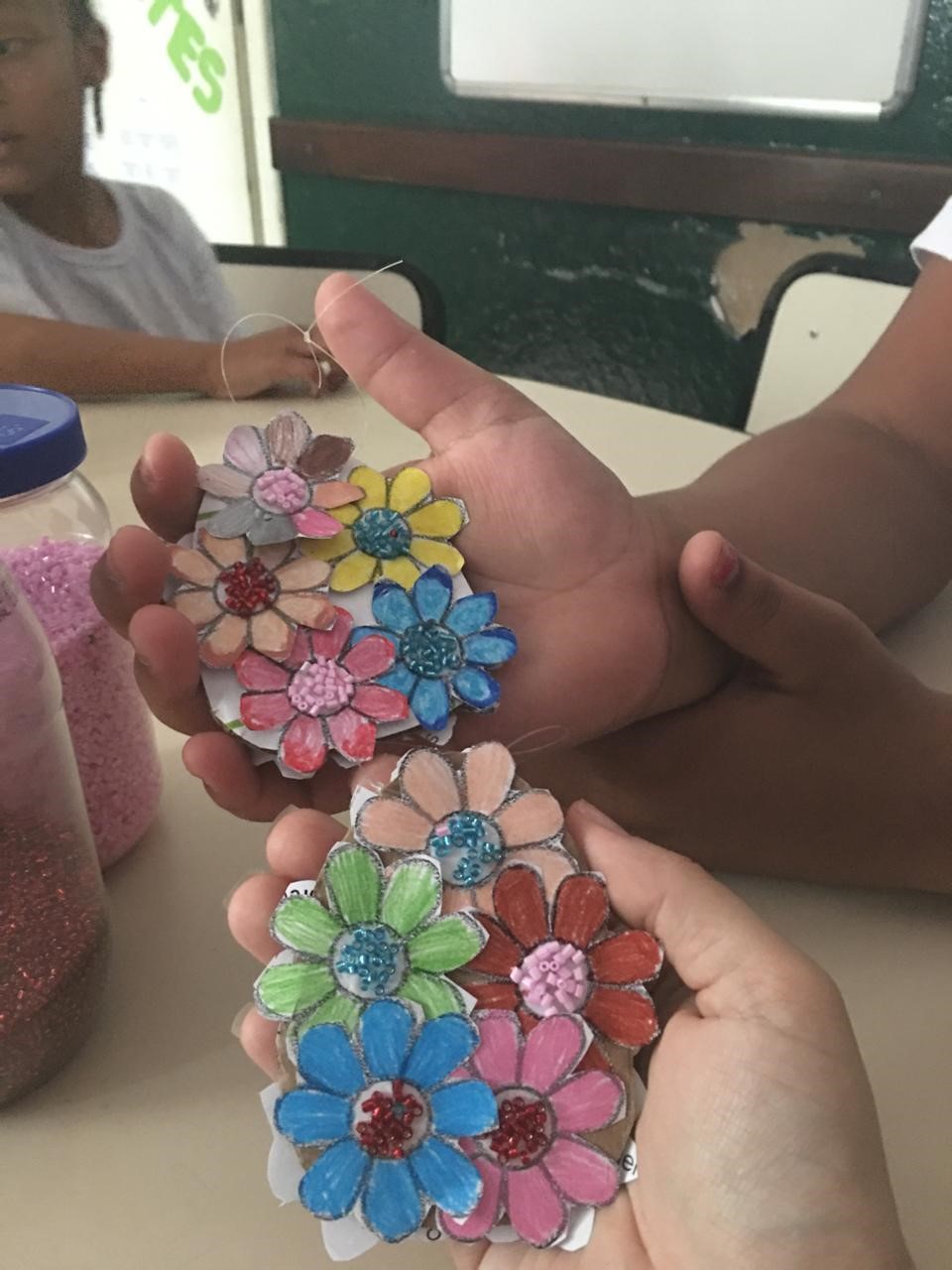 Ao longo do mês de março e início do mês de abril, às crianças participantes da Oficina de Artesão Mirim, Pedraria, produziram um pingente de ovos decorados com flores. A produção foi de encontro ao momento pascal, onde paramos para refletir sobre a entrega de amor feita por Cristo à humanidade. A Páscoa nos ensina o verdadeiro sentido do amor, da esperança e da renovação. Trouxemos esse item simbólico para mostrar às crianças que não somente de ovos de chocolates a Páscoa é feita, mas também de entrega e sabedoria. As flores simbolizam a beleza, a perfeição, o amor, a glória e a alegria, o que nos remete à entrega a Deus e à evolução espiritual!