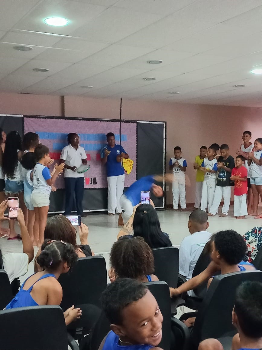 As crianças e adolescentes do Projeto Vida apresentaram um fragmento do espetáculo de dança “Povoada”, promovido como encerramento da oficina de dança desenvolvida na Unidade no percurso de 2023.