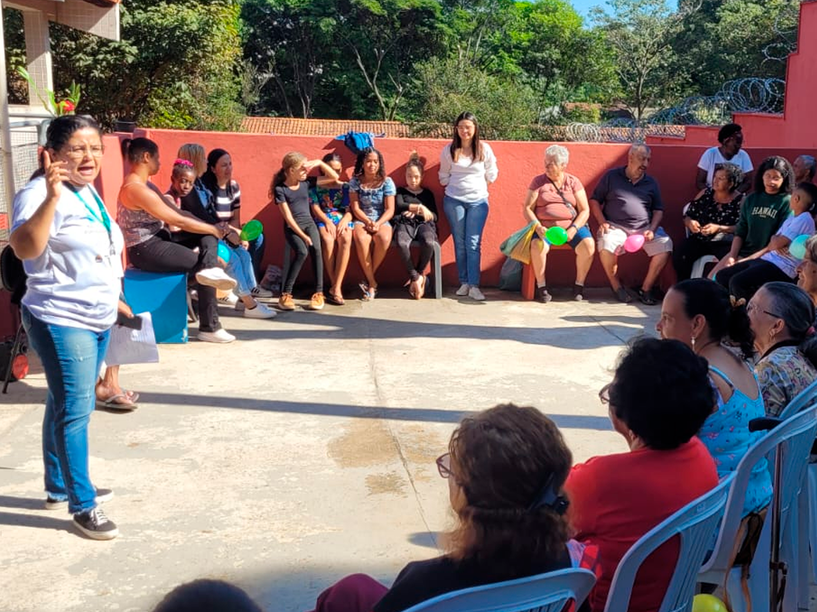 Junho é o mês reservado para conscientização sobre a violência que acontece com os idosos. O CRAS Dandara convidou a unidade para uma ação pontual, nos reunimos para dialogar de forma intergeracional. Conversamos sobre as formas de brincar do presente e do passado, brincamos de telefone sem fio, batata quente e aprendemos sobre algumas leis direcionadas aos idosos. Uma das instituições parceiras preparou um mimo para todos os presentes reforçando a importância da necessidade do cuidado com os idosos.