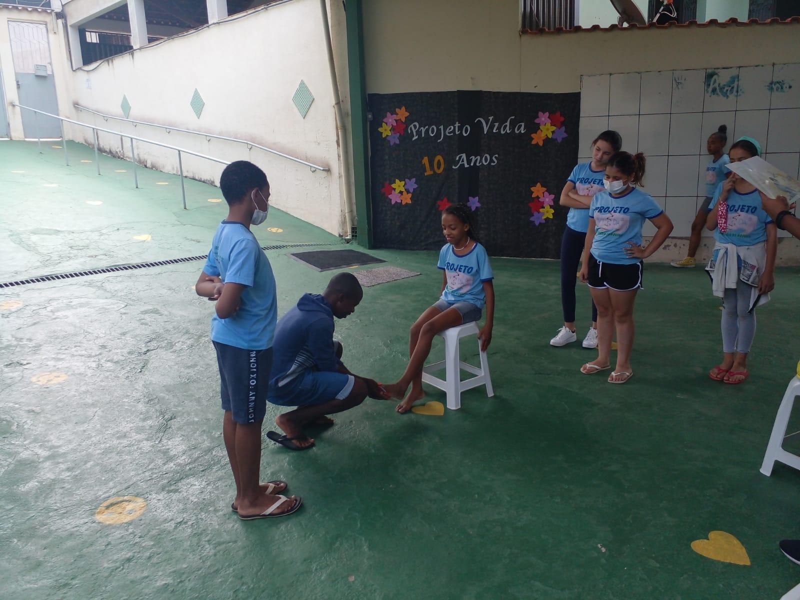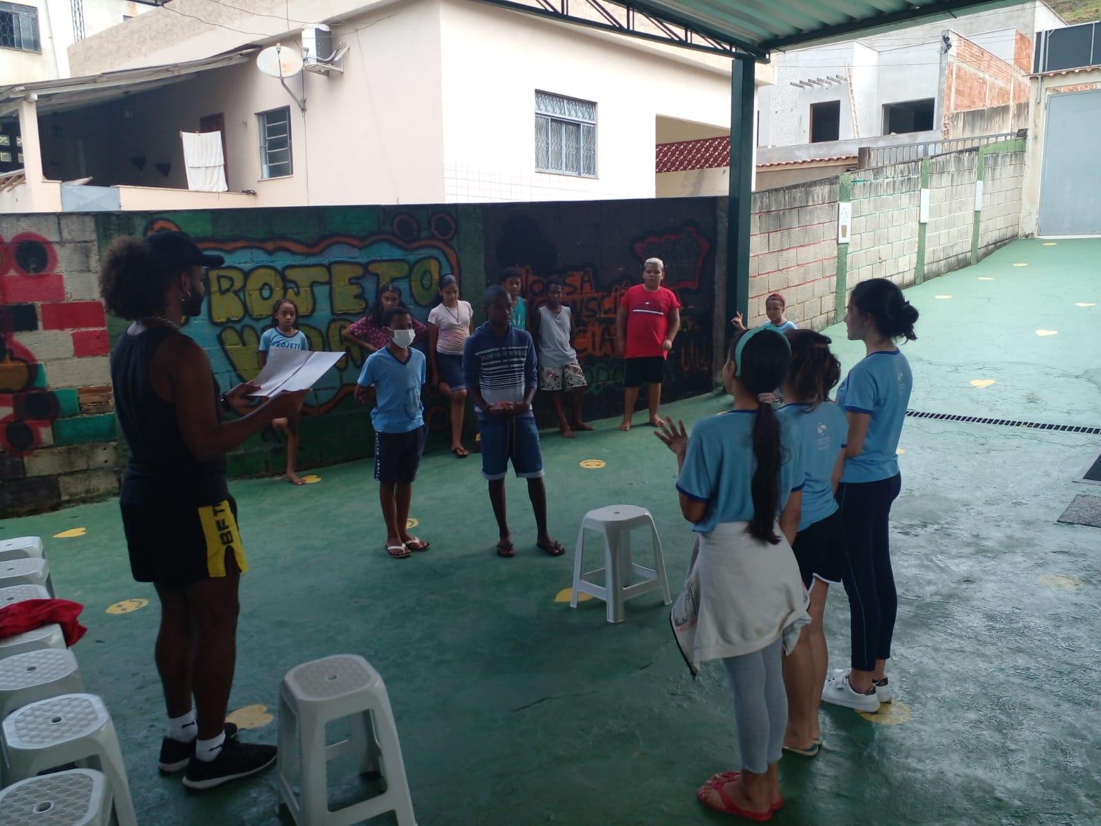Com o objetivo de realizar atividade em alusão ao Dia Internacional Contra a Discriminação Racial, foi desenvolvido pelo facilitador da Oficina de Teatro, Maykon Ray,  junto às crianças e aos adolescentes, cenas do livro ‘A Cinderela e Chico Rei’, uma adapatação de Cristina Agostinho e Ronaldo Simões Coelho, em que os participantes representaram as personagens da história.