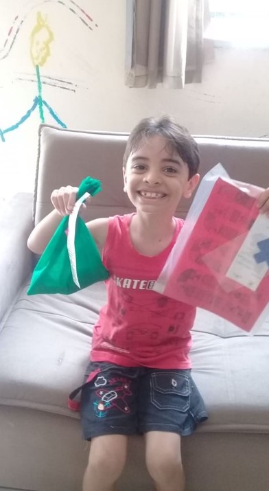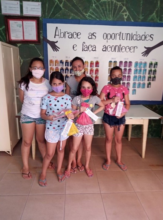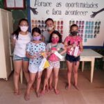 Para celebrar a semana da criança, todas receberam de presente uma sacolinha recheada de guloseimas e uma poesia que trazia a singeleza e a pureza de ser criança.