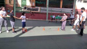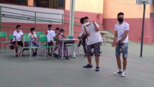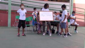 Para que as atividades acontecessem num espaço que possibilitasse o distanciamento adequado para a segurança e o convívio, as atividades de janeiro foram desenvolvidas em uma Escola Pública, bem pertinho do Projeto. A referência é a Unidade Socioassistencial, assim as crianças e adolescentes chegaram, foram acolhidas, almoçaram, foram para o espaço da Escola e se divertiram. Ao final do dia, retornam para um delicioso lanche.