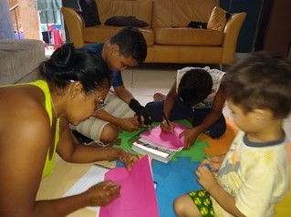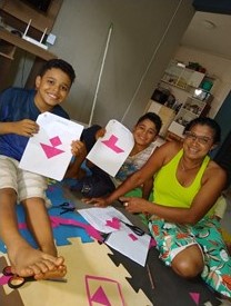 Tivemos como atividades: jogo Roda das Emoções, montagem de Tangram, Bingo de Valores, Show de Talentos e arrecadação de garrafas pet. Os/as beneficiados/as retiravam semanalmente as tarefas na Instituição para executarem junto às suas famílias e, posteriormente, postarem as fotos nos grupos de WhatsApp. Como suporte para a realização das atividades, foram enviadas mensagens de texto, vídeos explicativos e motivacionais gravados pela educadora Vânia Fonseca.