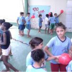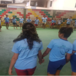 A gincana recreativa aconteceu de maneira dinâmica e participativa, com brincadeiras e competições bastante diversificadas e interessantes. As crianças e os adolescentes foram contempladas com mais uma doação de brownies, da empresa o “Brownie do Rafa”, da cidade de Juiz de Fora, que trouxe mais sabor para as atividades diferenciadas. Para conduzir o momento, contamos com a presença e participação do voluntário da oficina de dança João Paulo Salvador, que deu uma grande contribuição nas provas durante o show de talentos.