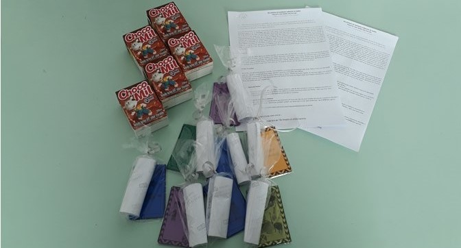Não deixando de lado as datas importantes, em comemoração ao aniversário da Lei Maria da Penha encaminhamos um texto informativo-reflexivo e, também, um livreto todo ilustrado sobre o folclore brasileiro. Junto dele, umas guloseimas doadas pelo Colégio Sagrado Coração de Maria de Belo Horizonte.