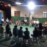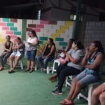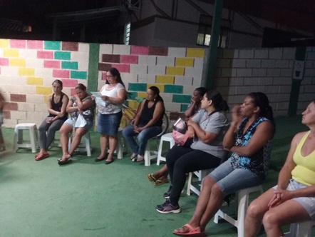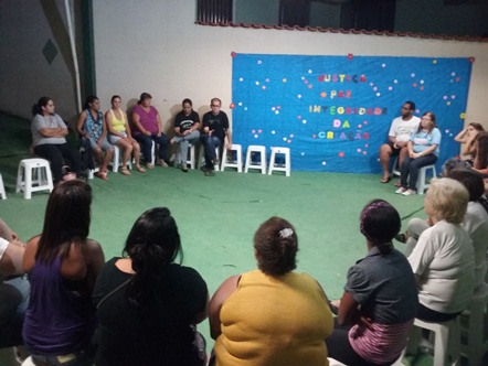 Fernanda Ramos Moreira, que é mãe de três crianças que frequentam o Projeto Vida no turno da tarde, e Vivian da Penha Quirino, que é mãe de uma adolescente que frequenta o Projeto Vida no turno da tarde, falaram sobre a Paz; Fernanda iniciou sua fala dizendo que é muito difícil falar sobre paz sem justiça e que aqui no bairro não está tendo paz. Ela não tem sossego para deixar seus filhos em casa para ir trabalhar. Há alguns dias deram um tiro em seu portão. Já a Vivian falou que para que o mundo tenha paz, ela deve começar dentro de casa. Relatou com muita propriedade e emoção, seus conflitos vivenciados e o resultado deste relacionamento foi a falta de paz. Hoje separada, busca resgatar a paz no lar junto aos seus filhos.