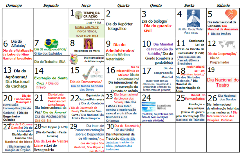 Calendário JPIC do mês de setembro