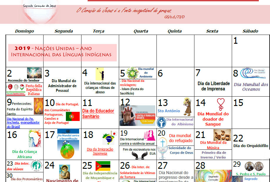 JUNHO 2019 – Calendário da Rede JPIC – RSCM