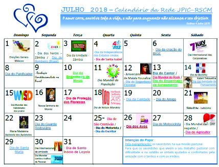 JULHO 2018 – Calendário da Rede JPIC- RSCM