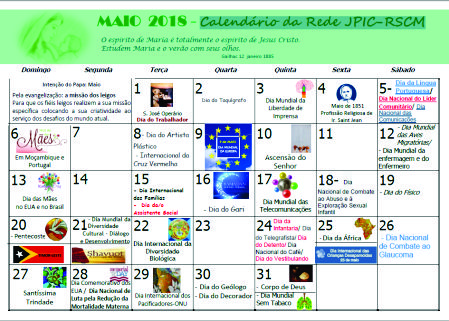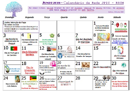 JUNHO 2018– Calendário da Rede JPIC – RSCM