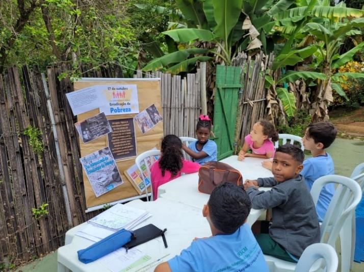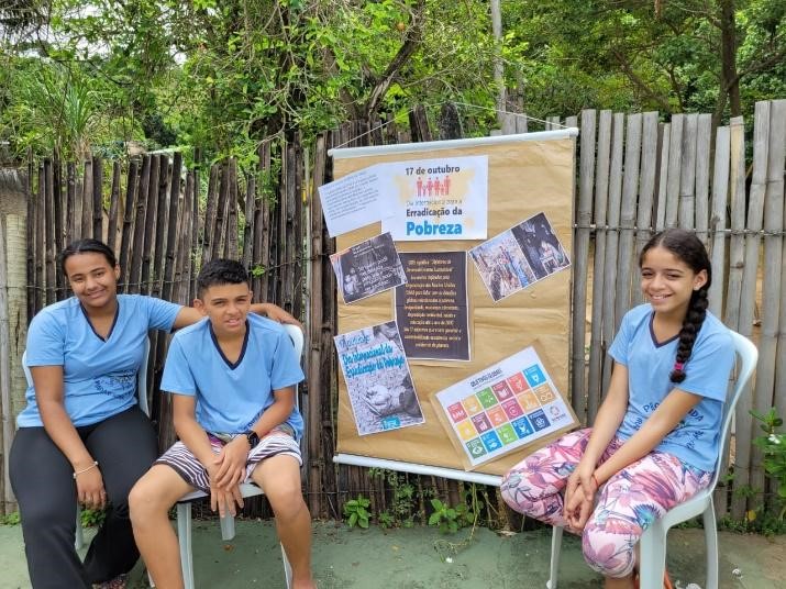 Através de leituras e imagens, realizou-se uma roda de conversa, que teve início com a pergunta: o que se entende por pobreza? Diante das respostas, foi colocado para todos que pobreza não se entende como apenas falta de dinheiro e sim da privação de oportunidades básicas, como: educação, saúde, moradia, trabalho e alimentação, e que pobreza extrema é considerada um crime contra os Direitos Humanos.