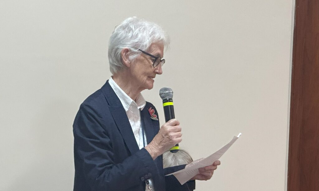 Estamos reunidas aqui, vindas de muitas partes do mundo, trazendo nossas esperanças, sonhos e preocupações, e carregando em nossos corações também as esperanças, sonhos e preocupações daquelas e daqueles que deixamos para trás: nossas Irmãs na comunidade, nossos colegas de missão, os membros da nossa Família Ampliada e da nossa Rede Global de Escolas. Todas essas pessoas estão conosco em espírito, unidas a nós em oração, e estarão presentes conosco ao longo de todo o Capítulo. Muitas enviaram saudações e mensagens de apoio, que colocaremos no átrio.