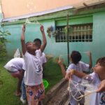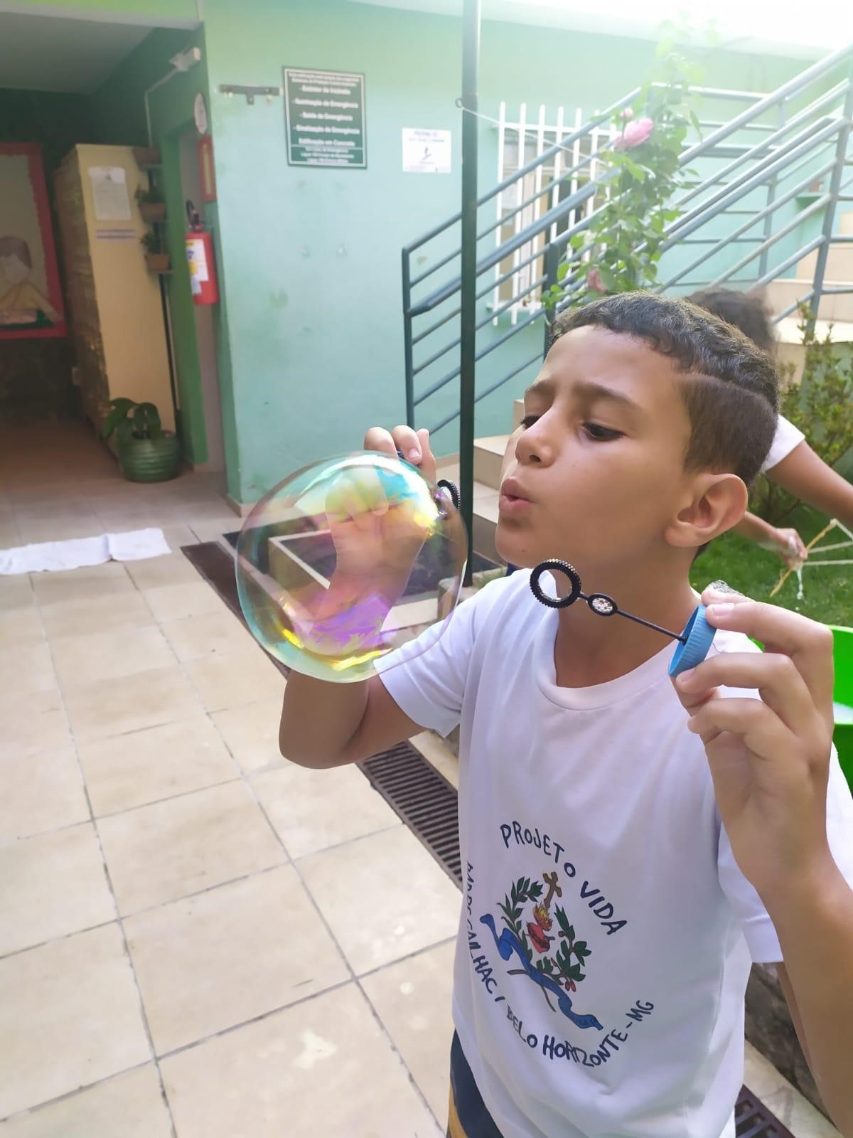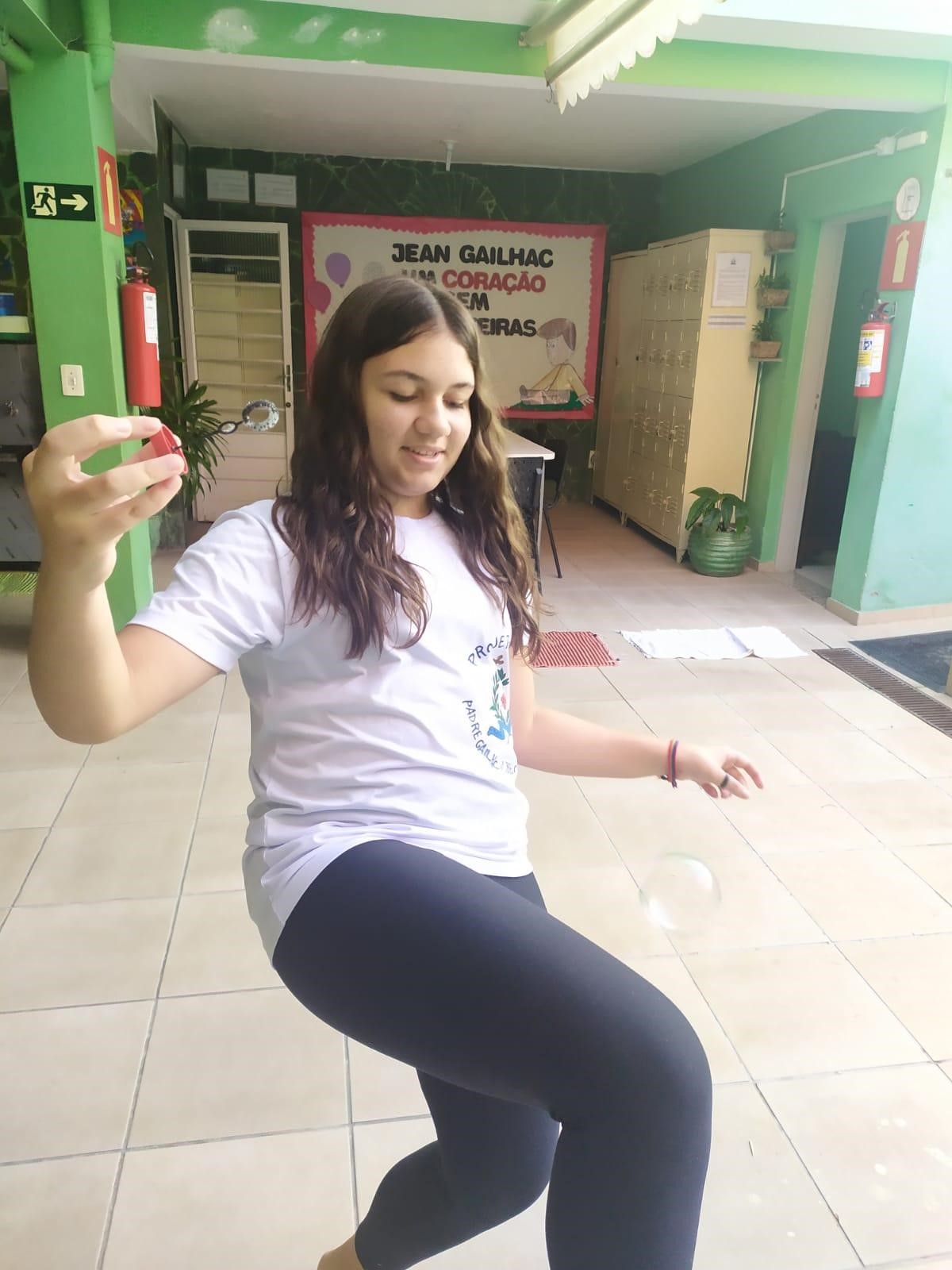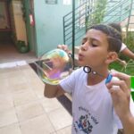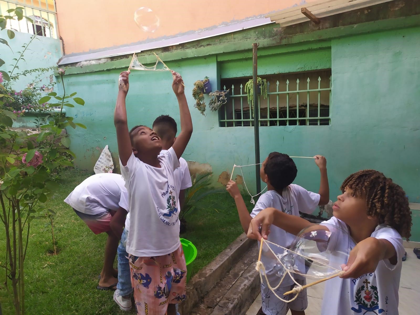 As bolhas de sabão tomaram conta do espaço da Unidade. A oficina de brinquedoteca apostou no simples e acertou em cheio. As crianças e os adolescentes se envolveram com muita alegria na proposta. A educadora ensinou a fazer a receita do líquido “Mágico” e das ferramentas para a confecção das bolhas. A brincadeira foi maravilhosa e já estão querendo mais.