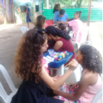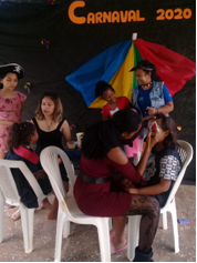 A culminância do trabalho aconteceu com um o baile – cuja decoração foi construída na oficina de artesanato – que trabalhou a temática e a importância cultural do evento. A festa foi animada pela alegria das crianças e dos adolescentes que usaram fantasias, dançaram ao som de marchinhas carnavalescas e brincaram com confetes. Houve também pintura de rosto com as educadoras, Imaculada Sales e Jussara Carmo, que contaram com a parceria de algumas crianças e adolescentes na criação das pinturas.