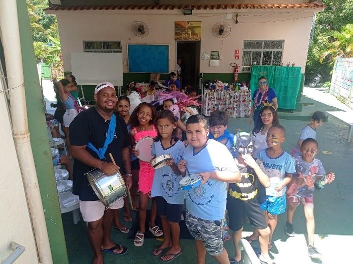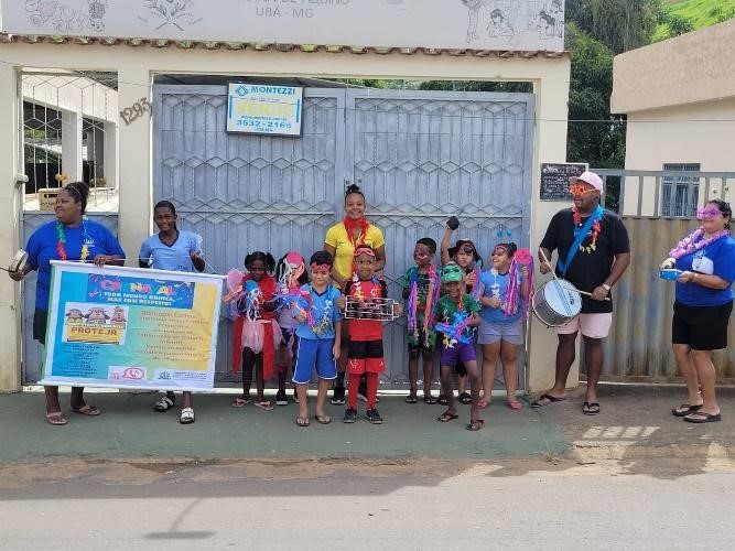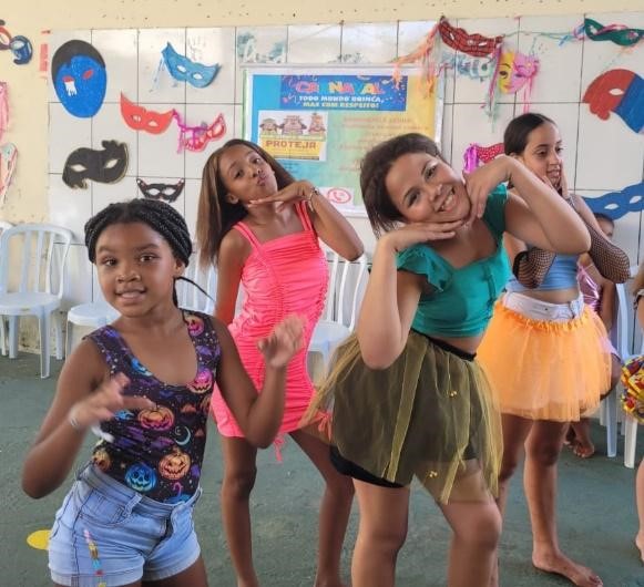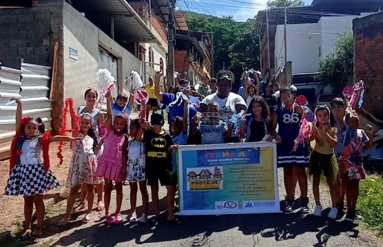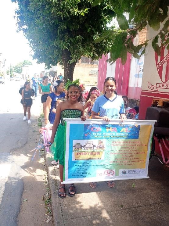 No dia 08 de fevereiro, para encerrar a temática, foi realizada uma ação no território onde, com o bloco “Projeto Folia”, fantasiados e com adereços produzidos durante a Oficina de Artes, saíram pelo bairro, panfletando e colando cartazes nos espaços públicos e comércios, com a mensagem “Carnaval Todo Mundo Brinca, Mas Com Respeito”, destacando a campanha de proteção de crianças e adolescentes. Depois, curtiram um divertido baile de carnaval na sede da Unidade.