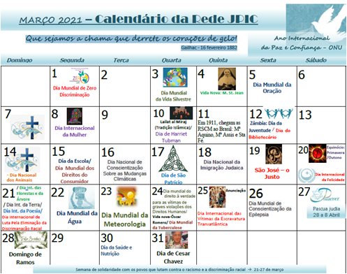Calendário JPIC – Março 2021