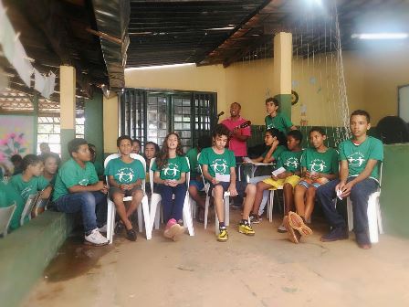 Cheios de entusiasmo e alegria, os adolescentes cantaram o Pai Nosso, acompanhados pelo educador Nilário Pereira.