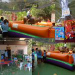 No primeiro dia, foi ofertada uma tarde de diversão com os brinquedos pula-pula, touro mecânico, música e dança, além do “Cantinho das Cores”, atividades lúdicas desenvolvidas pelas educadoras sociais, como colorir e confecção de massinha caseira. Os participantes se jogaram nas brincadeiras, finalizando o dia com um delicioso lanche e foram contemplados com um kit de guloseimas.