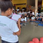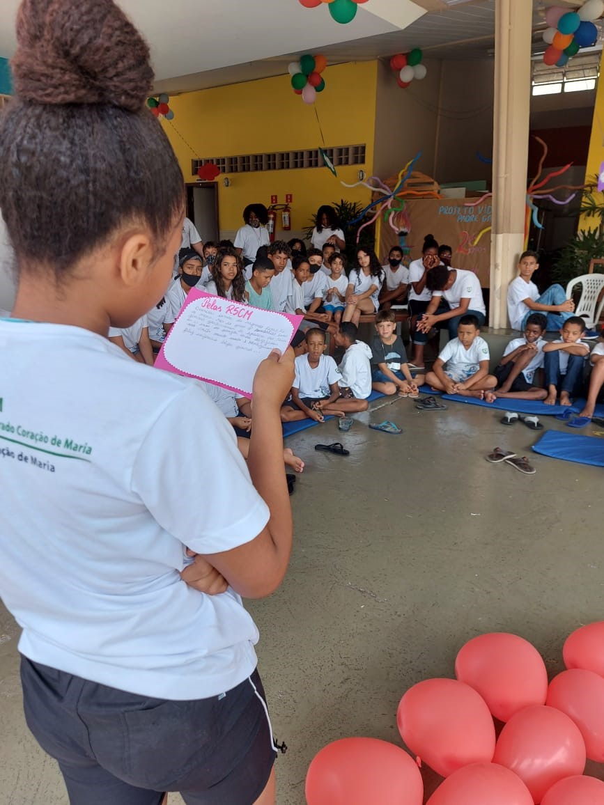 As crianças e os adolescentes foram convidados a refletir sobre a história da Unidade e a importância das crianças e dos adolescentes, das famílias, da comunidade e dos parceiros, da equipe e das religiosas, representadas no dia pela Ir. Cláudia, para que esta obra se tornasse referência de cuidado e acolhida neste território.