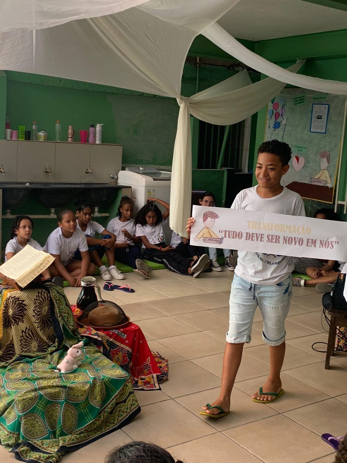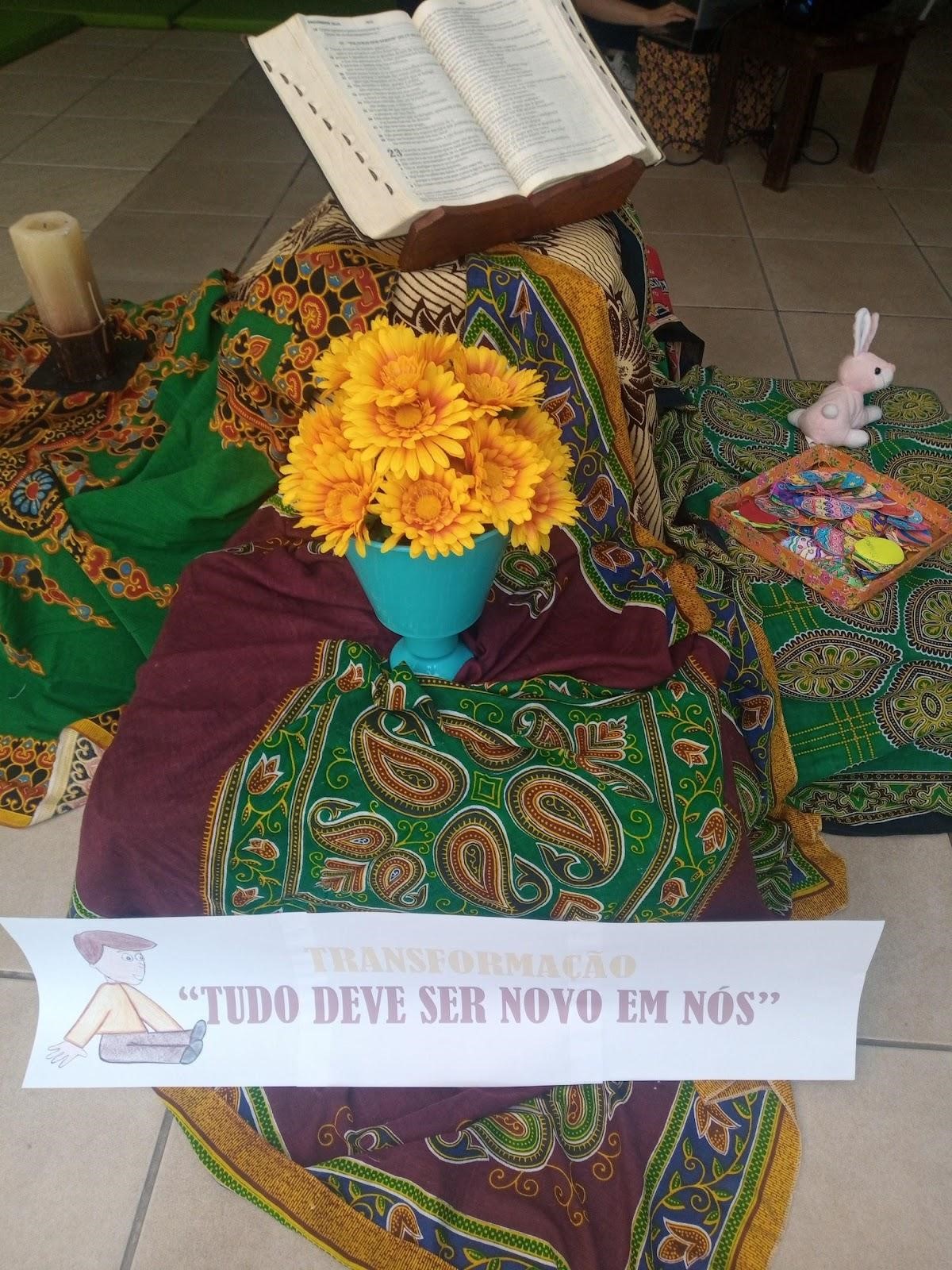 Transformação “Tudo deve ser novo em nós”, foi uma das motivações para a celebração da Páscoa na Unidade.  A frase de Pe. Gailhac nos provocou… Páscoa é um momento para rever posturas, ideias, conceitos, repensar atitudes e se aventurar rumo a caminhos onde reina a empatia, a equidade e a fraternidade. A celebração foi realizada debaixo de uma tenda, fazendo menção à passagem bíblica Mateus 17:4. O momento foi muito significativo, simbólico e lúdico. Refletimos sobre os símbolos Pascais e seus significados, o olhar religioso e o comercial.