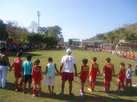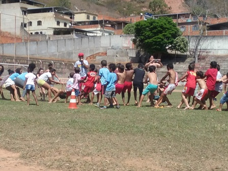 Após o café, aconteceu uma partida de futebol entre as crianças de 6 a 9 anos do Projeto Vida com as crianças da escolinha de futebol do campo do Bonsucesso.