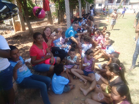 Enquanto isso, os demais, além de fazerem torcidas, puderam participar de diversas brincadeiras com um voluntário de animação de festas que estava presente. As adolescentes montaram um espaço de manicure. Fizeram as unhas das mulheres que estavam presentes.