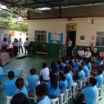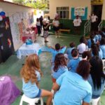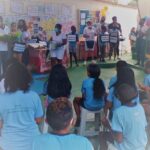 Após a fala de boas vindas da coordenadora e mensagens das convidadas, realizou-se um ofertório, onde os presentes cantaram o hino “Não Deixa a Lamparina Apagar” ao som do berimbau tocado pela oficineira de capoeira, Déborah Pereira, onde os colaboradores, crianças e adolescentes entraram com cartazes e objetos simbolizando os setores que compõem a estrutura da unidade.