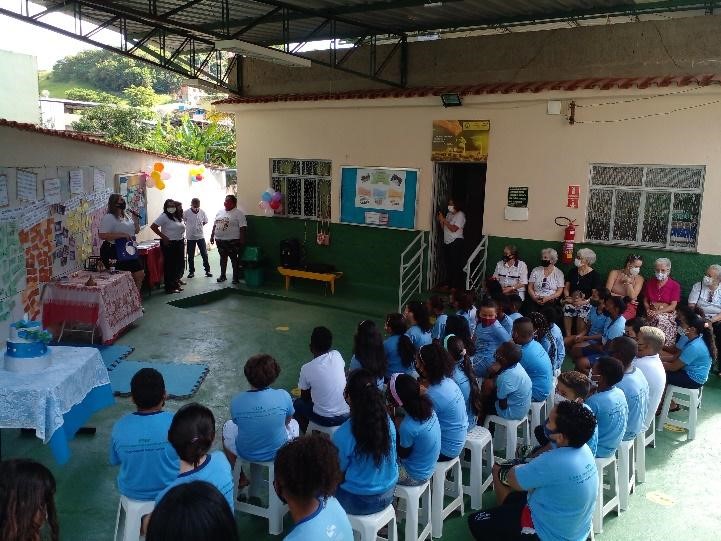 Após a fala de boas vindas da coordenadora e mensagens das convidadas, realizou-se um ofertório, onde os presentes cantaram o hino “Não Deixa a Lamparina Apagar” ao som do berimbau tocado pela oficineira de capoeira, Déborah Pereira, onde os colaboradores, crianças e adolescentes entraram com cartazes e objetos simbolizando os setores que compõem a estrutura da unidade.